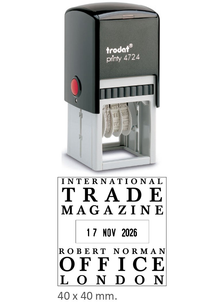 Sello Fechador Printy 4724. - Superficie de impresión: 40x40 mm.