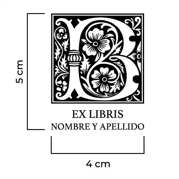 Sello Exlibris Letra B Rose. Sello de caucho exlibris con goma fabricada en resina para impresiones nítidas y de larga duración, montado en montura de hierro zincado, ventana de impresión de metacrilato y mango de madera lacado negro.