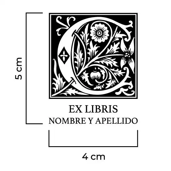 Sello Exlibris Letra C Rose. Sello de caucho exlibris con goma fabricada en resina para impresiones nítidas y de larga duración, montado en montura de hierro zincado, ventana de impresión de metacrilato y mango de madera lacado negro.