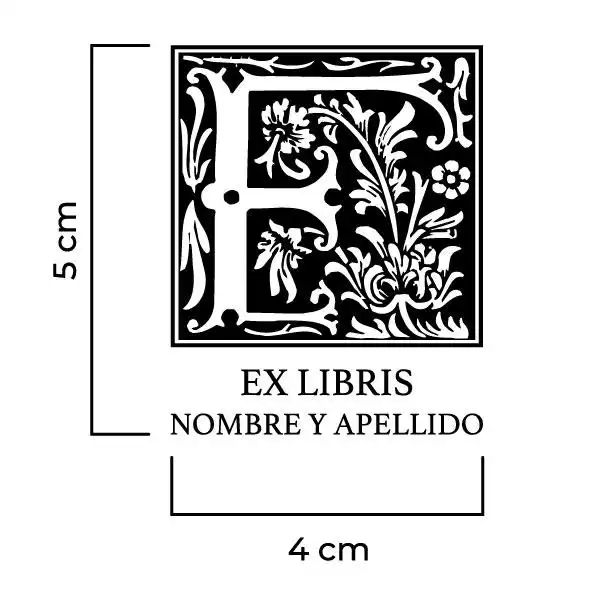Sello Exlibris Letra F Rose. Sello de caucho exlibris con goma fabricada en resina para impresiones nítidas y de larga duración, montado en montura de hierro zincado, ventana de impresión de metacrilato y mango de madera lacado negro.