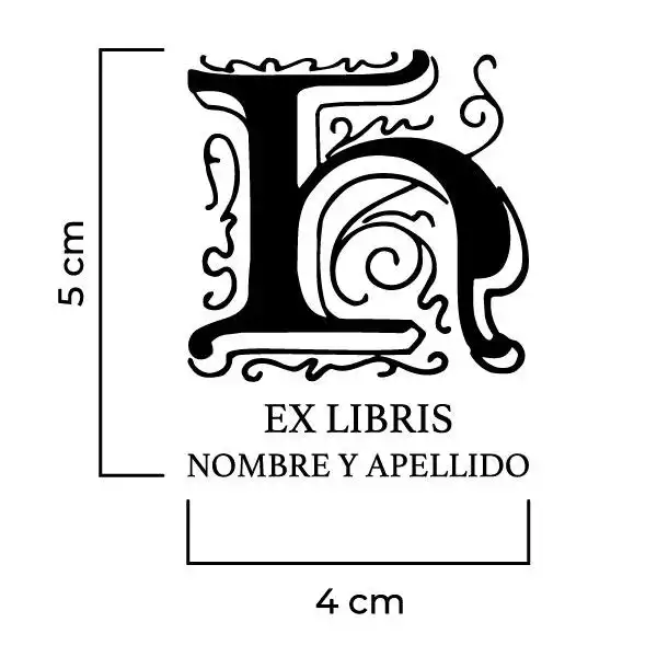 Sello Exlibris Letra H Genzsch. Sello de caucho exlibris con goma fabricada en resina para impresiones nítidas y de larga duración, montado en montura de hierro zincado, ventana de impresión de metacrilato y mango de madera lacado negro.