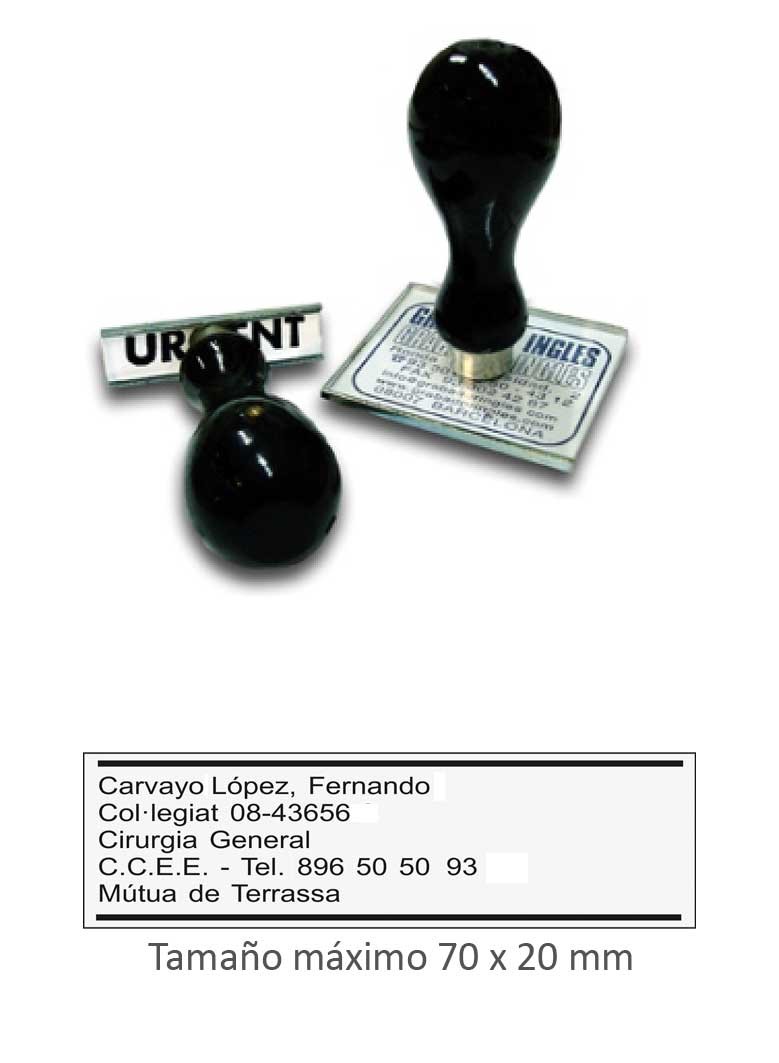 Sello de caucho manual 7x2 cm. - Superficie de impresión: 70 x 20 mm.