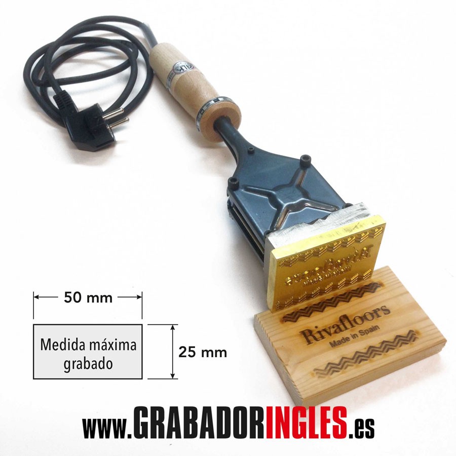 Sello termograbado 200W para madera. Medida 50x25 mm. - Sello termograbador para madera de medida 50x25 mm. El grabado del sello para madera se hace sobre una pieza de metal y se puede grabar dibujos, logotipos y textos. Los precios indicados incluyen el termograbador y el sello grabado.