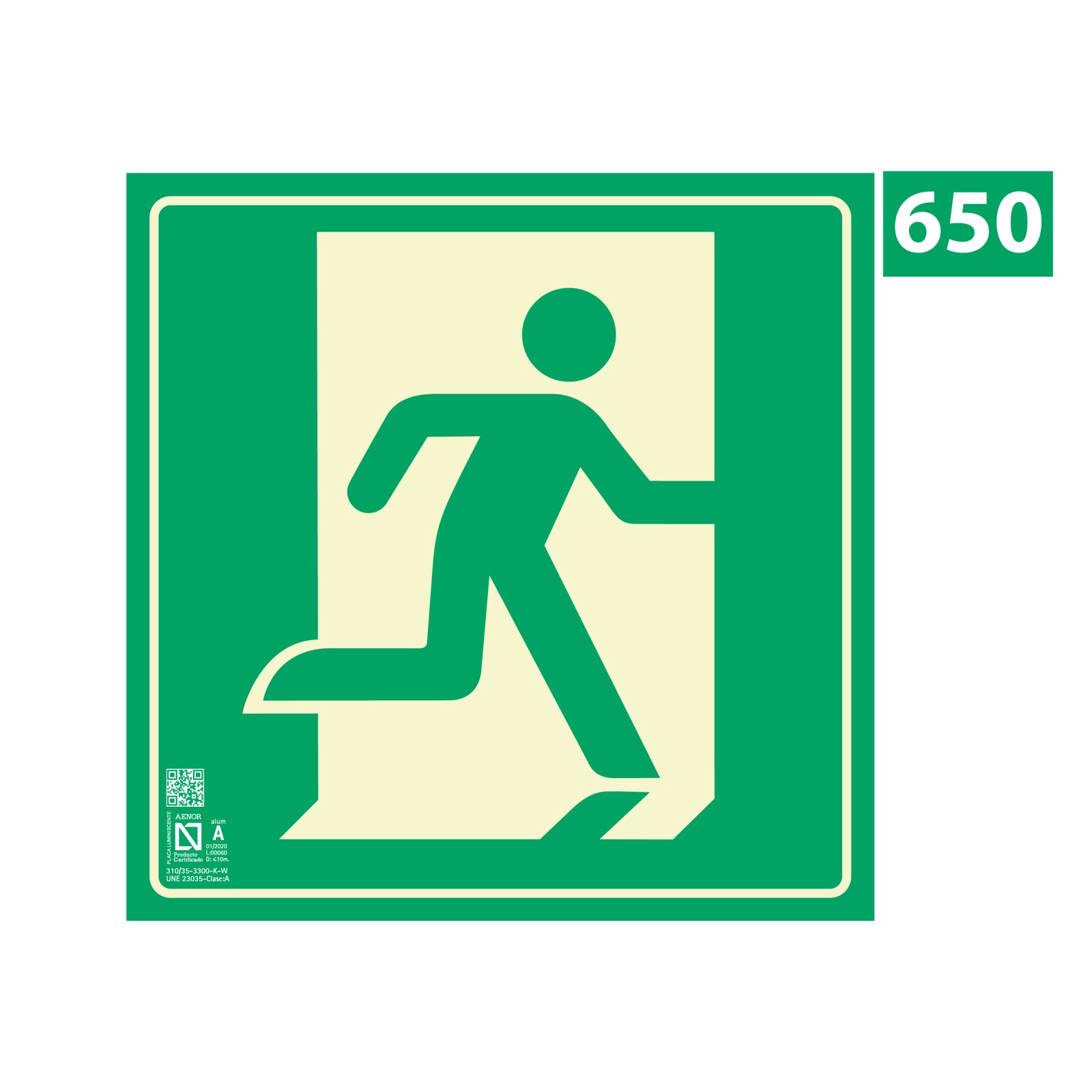 Señal fotoluminiscente, con protección UV y tratamiento antigrafiti según norma UNE 23-034-88.