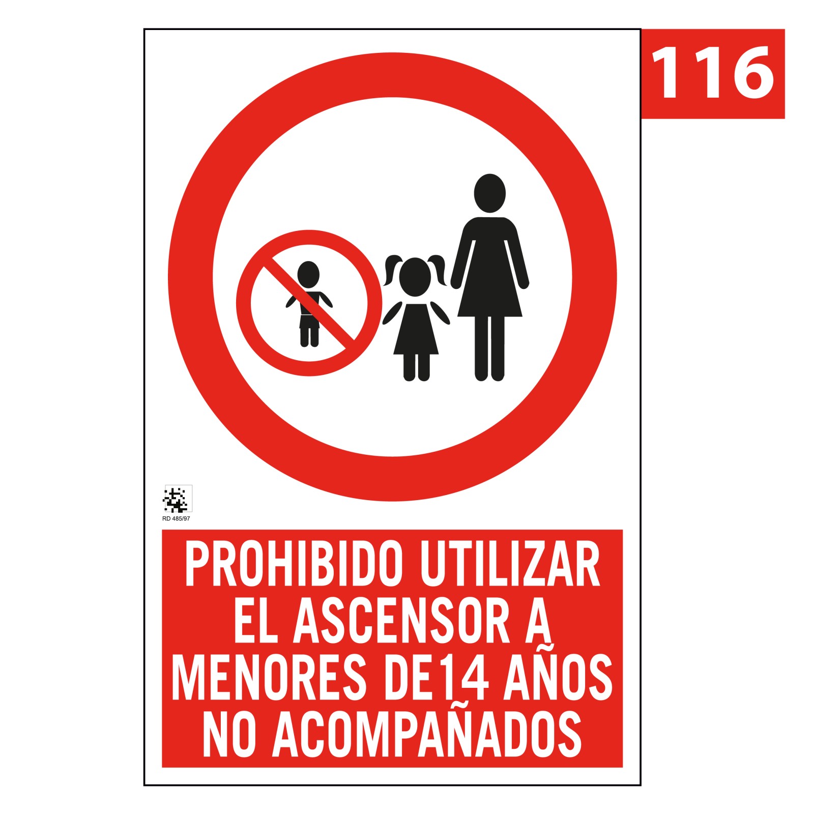 Señal de Prohibido Utilizar el Ascensor a Menores de 14 Años 116 - SEÑAL PROHIBIDO UTILIZAR EL ASCENSOR A MENORES DE 14 AÑOS