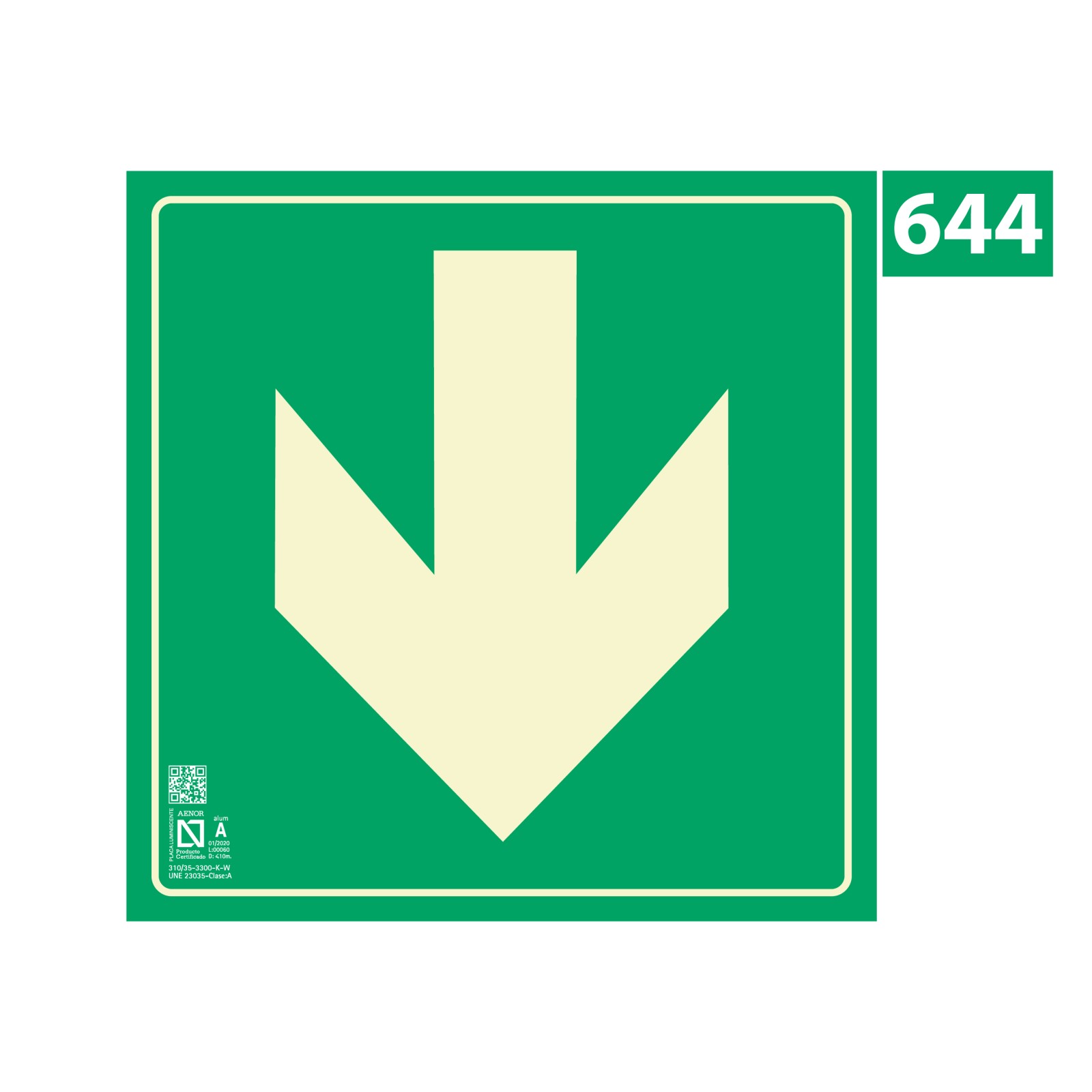 Señal fotoluminiscente, con protección UV y tratamiento antigrafiti según norma UNE 23-034-88.