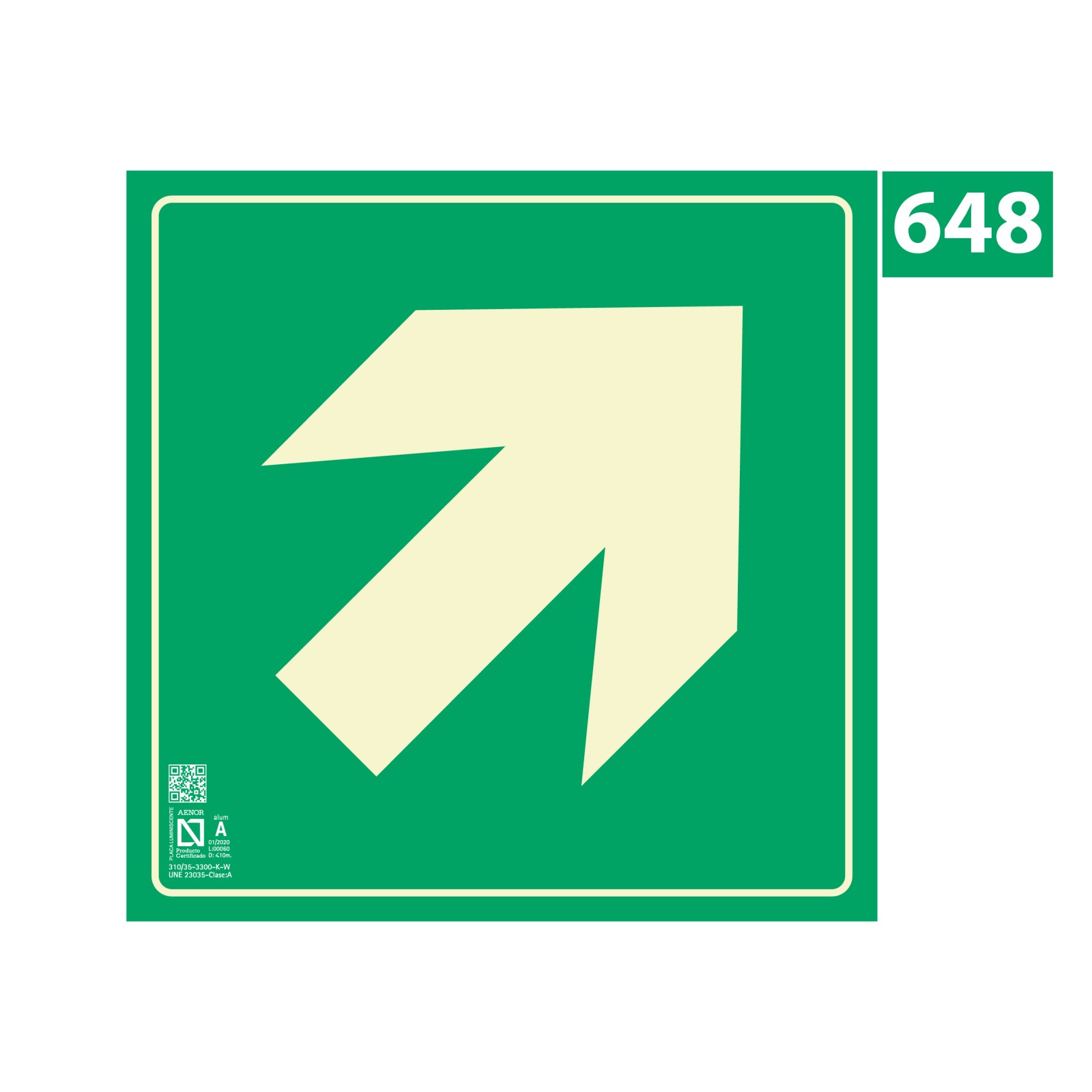 Señal fotoluminiscente, con protección UV y tratamiento antigrafiti según norma UNE 23-034-88.