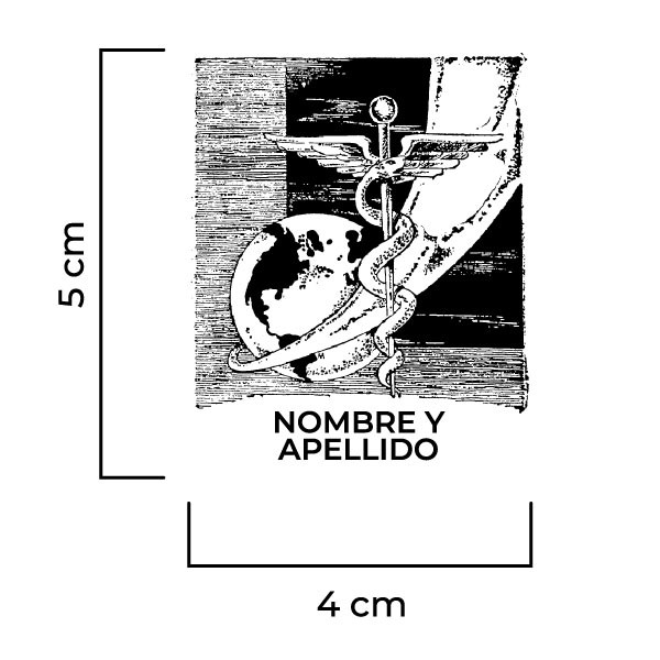 Sello Exlibris Medicina. Sello de caucho exlibris con goma fabricada en resina para impresiones nítidas y de larga duración, montado en montura de hierro zincado, ventana de impresión de metacrilato y mango de madera lacado negro.