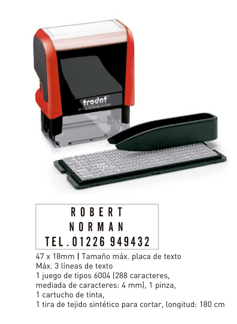 - Se suministra con una tira de tela blanca para marcar sobre tejidos oscuros. Almohadilla entintada con tinta especial para uso textil, resitente al lavado.